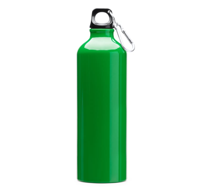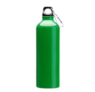 Bottiglia in alluminio con tappo a vite e moschettone. Capacità di 800 ml, perfetta per i viaggi.