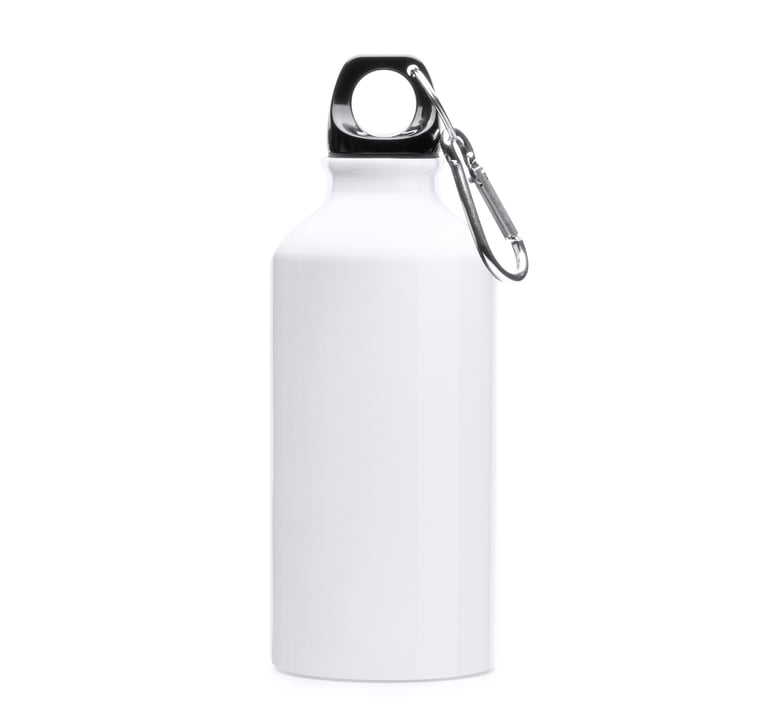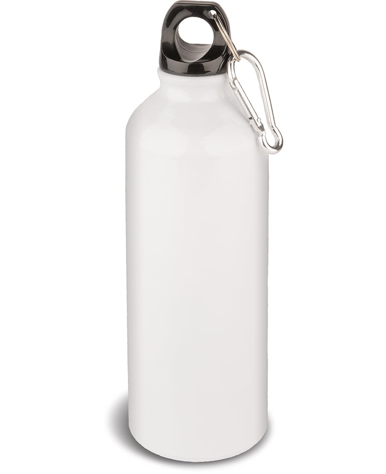 Borraccia in alluminio con tappo a vite e moschettone. Capacità 500 ml.